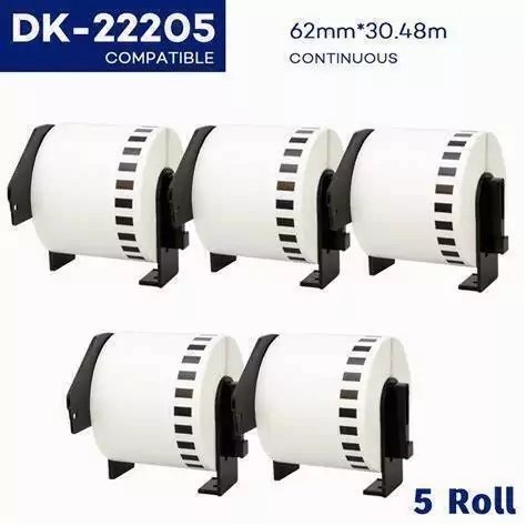 ROLLO CONTINUO DE CINTA DE PAPEL TERMICO AUTOADHESIVO ALTERNATIVO COMPATIBLE PARA BROTHER DK2205 62MM ANCHO X 30.48 METROS LARGO CON EJE WITH HOLDER PARA QL700 QL 720 1060 BLACK ON WHITE TAPE